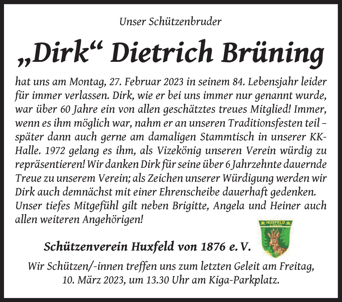 Auf dieser Seite gedenken wir unseren verstorbenen Schützenschwestern und Schützenbrüdern. Ihr seid niemals vergessen und wir werden euch ein würdeiges Andenken erhalten.