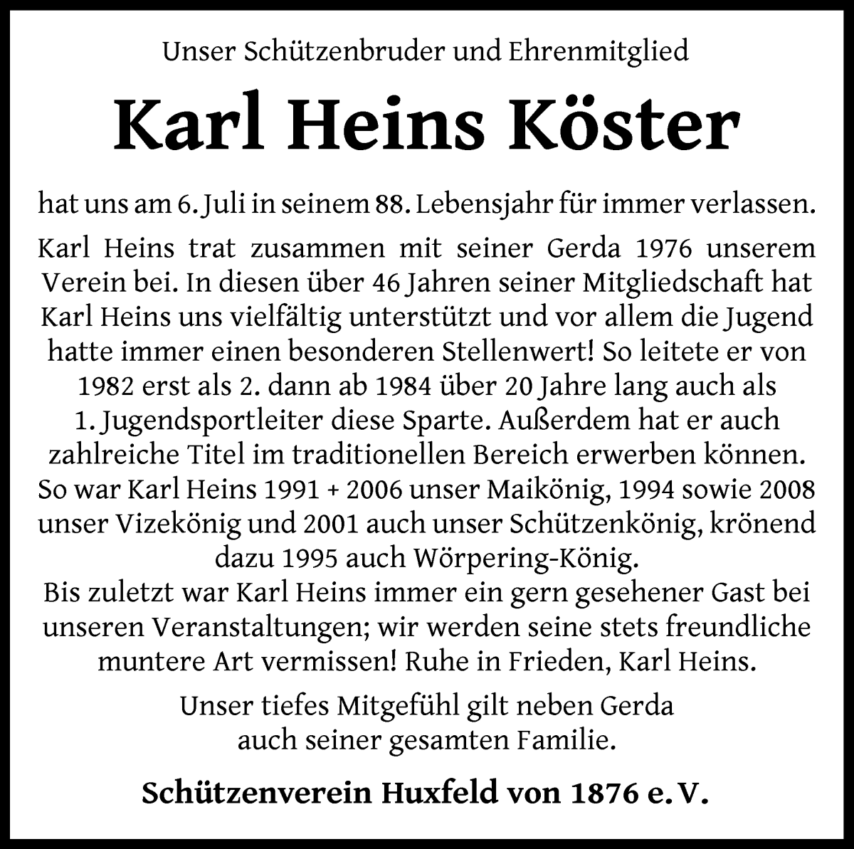 Auf dieser Seite gedenken wir unseren verstorbenen Schützenschwestern und Schützenbrüdern. Ihr seid niemals vergessen und wir werden euch ein würdeiges Andenken erhalten.